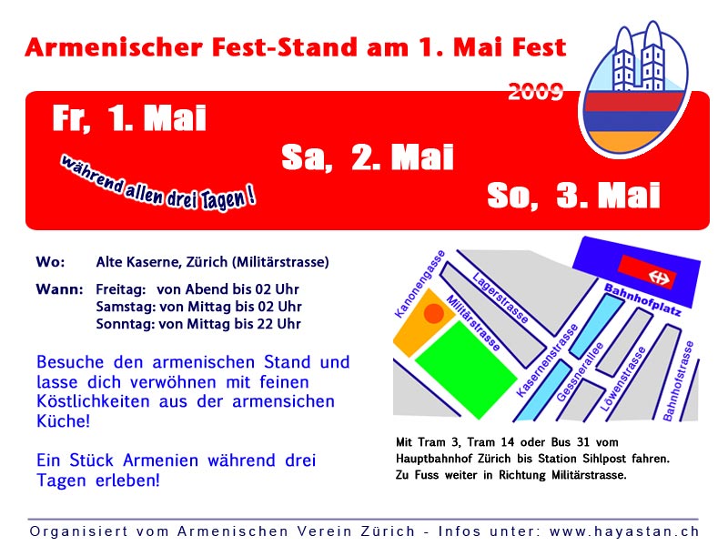 Comback des Armenischen Standes am 1. Mai Fest in Zürich! Der Armenische Verein Zürich ist das zweite Mal dabei.