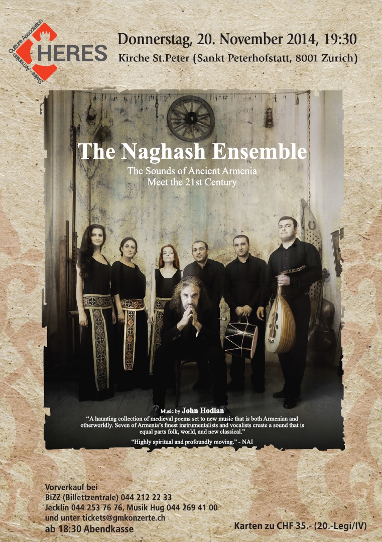 HERES Schweizerisch-Armenische Kulturassoziation präsentiert Narine Sahakian und Narek Kazazyan, Preisträger des Eurovision Young Musician Contest, mit einzigartigem Konzert am 14. Januar im Zürcher Kulturhaus Helferei als Eröffnung der 2016 Musiksaison. Ort: Kirchgasse 13, 8001 Zürich