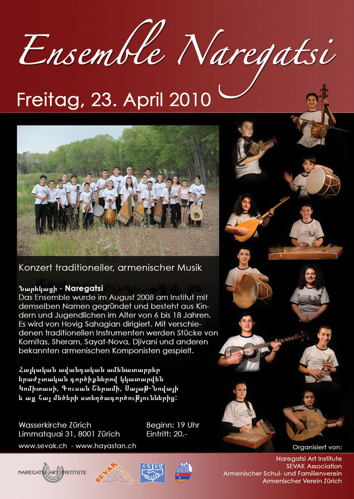 Der Erlös geht an den Armenischen Verein Zürich zur Unterstützung der fianziellen Kosten für die Armenische Schule Zürich.