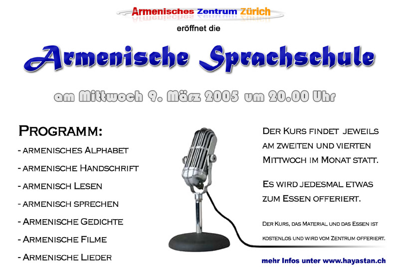 Eröffnungsfeier des Armenischen Zentrums Zürich Eröffnung der Armenischen Sprachschule im Armenischen Zentrum Zürich armenischer Schulkurs 01 Website www.hayastan.ch geht online